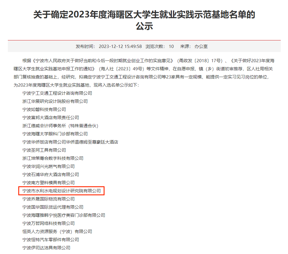 喜報 | 我院獲評2023年度海曙區(qū)大學(xué)生就業(yè)實踐示范基地