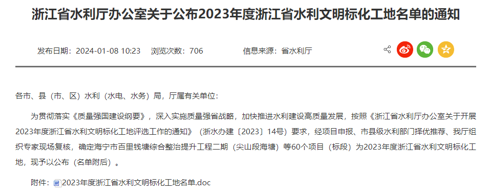 發(fā)布日期:2024.01.15 近日,經(jīng)浙江省水利廳2023年度浙江省水利文明標(biāo)化工地名單公布,我院承擔(dān)全過程工程咨詢的寧波市江北區(qū)小西壩泵站工程喜獲“浙江省文明標(biāo)化工地”稱號,成為寧波市水利行業(yè)的標(biāo)桿... -