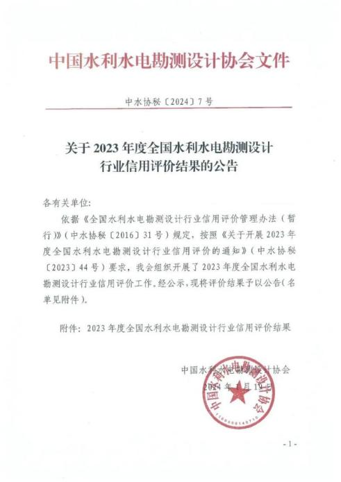 4項AAA,3項AAA+!我院在2023年度水利建設(shè)市場主體及全國水利水電勘測設(shè)計行業(yè)信用評價中再創(chuàng)佳績