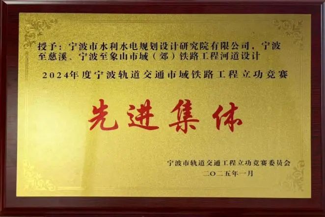 近日,在寧波軌道交通市域鐵路工程2024年度立功競(jìng)賽表彰大會(huì)暨市域鐵路公司2025年生產(chǎn)工作會(huì)議上,我院憑借在寧波至慈溪、寧波至象山市域(郊)鐵路工程河道設(shè)計(jì)中的出色表現(xiàn),獲得第四競(jìng)賽組第一名,授予“2024年度寧波軌道交通市域鐵路工程立功競(jìng)賽先進(jìn)集體”榮譽(yù)稱號(hào)。