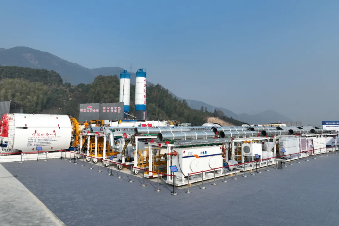 作為省、市重點(diǎn)工程建設(shè)項(xiàng)目,寧波市水庫(kù)群東西線聯(lián)通工程位于寧波市奉化區(qū)南部山區(qū),工程設(shè)計(jì)輸水規(guī)模為40萬(wàn)m³/d。建設(shè)內(nèi)容包括一條干線、兩條支線,以及沿線調(diào)節(jié)站及各類閥井,全線總長(zhǎng)約40.54km。6#隧洞作為本工程重要節(jié)點(diǎn)性分部工程,全長(zhǎng)約12.28km,采用鉆爆法+TBM(全斷面硬巖掘進(jìn)機(jī))進(jìn)行隧洞開(kāi)挖。值得一提的是,本次所采用的敞開(kāi)式TBM設(shè)備“寧波水務(wù)一號(hào)”,其開(kāi)挖直徑4.03米,整機(jī)長(zhǎng)度約225米,掘進(jìn)長(zhǎng)度10.87km,為寧波水利行業(yè)首次應(yīng)用。