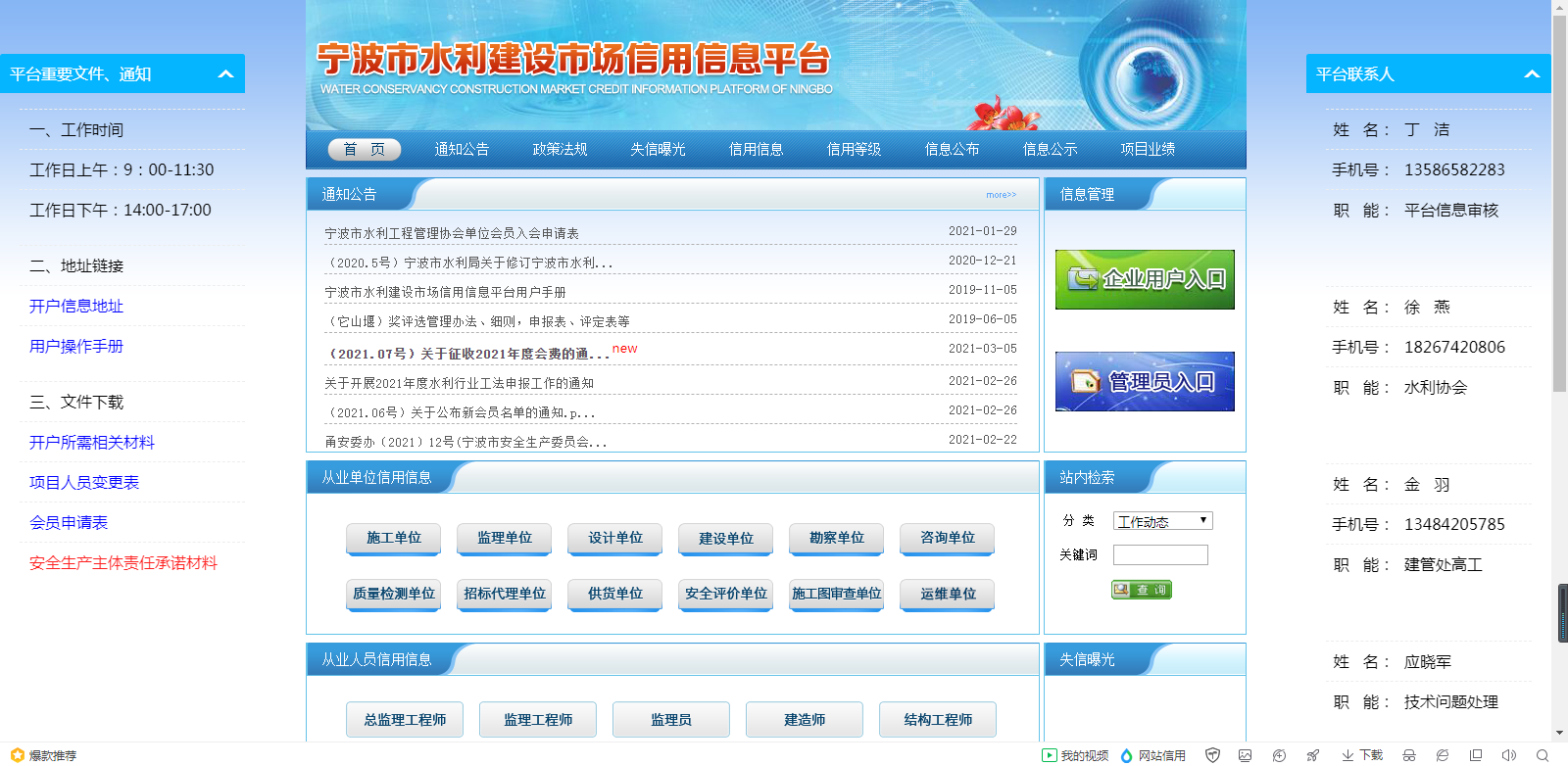 系統(tǒng)是以勘察設(shè)計、施工、監(jiān)理等水利建設(shè)市場主體及相關(guān)執(zhí)(從)業(yè)人員的信用信息為基礎(chǔ),采用B/S模式構(gòu)建水利建設(shè)市場主體各方信用信息互聯(lián)互通的網(wǎng)絡(luò)平臺,集成信用信息在線填報、市縣區(qū)分級審核、信用評價、數(shù)據(jù)統(tǒng)計、信用信息共享發(fā)布、門戶展示等業(yè)務(wù)部分,及時準確地為有關(guān)水行政主管部門開展建設(shè)市場行政監(jiān)管工作和社會公眾監(jiān)督提供條件,為社會各界查詢有關(guān)信用信息提供服務(wù)。