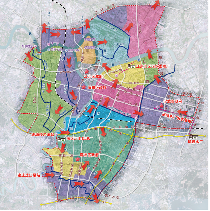 寧波市區(qū)清水環(huán)通一期工程西起機(jī)場高架、東至福慶路,北起北環(huán)高架,南至鄞州大道,面積合計(jì)約146km2,是寧波市區(qū)重要的河網(wǎng)引配水工程,亦是緩解老城內(nèi)澇壓力的有力舉措。為提升河網(wǎng)環(huán)境用水量、促進(jìn)水系互聯(lián)互通、改善水體流態(tài),寧波市區(qū)清水環(huán)通一期工程創(chuàng)新性的引入“精準(zhǔn)補(bǔ)水、高速水路”的計(jì)理念,切實(shí)解決了寧波城區(qū)現(xiàn)狀大水漫灌的河網(wǎng)調(diào)水模式下調(diào)水效率低下、補(bǔ)水針對(duì)性不強(qiáng)等痛點(diǎn)、難點(diǎn)問題。該工程可研報(bào)告于2021年5月獲寧波市發(fā)展和改革委員會(huì)批復(fù)。