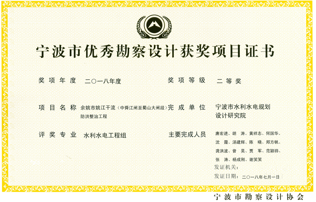 寧波市優(yōu)秀勘察設(shè)計(jì)獎(jiǎng)