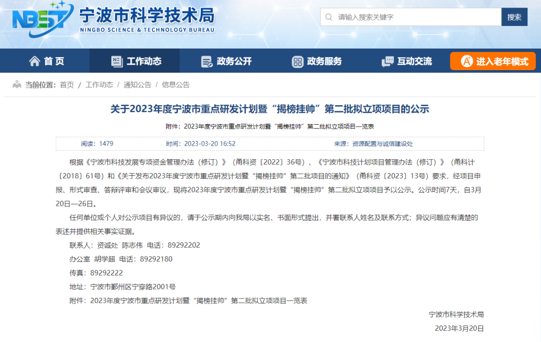 喜報 | 我院又一項目入選2023年度寧波市重點研發(fā)計劃!