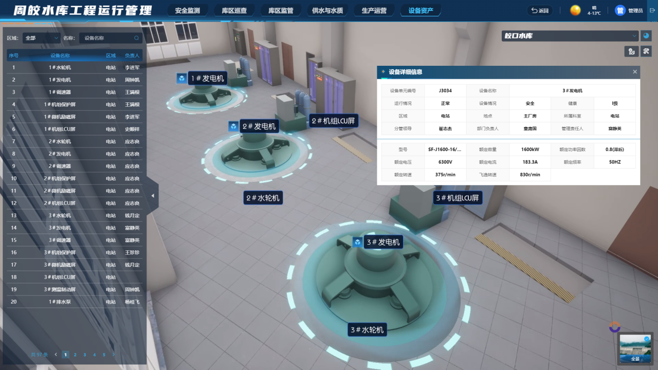 圍繞水庫及時除險、定期體檢、強化維護及保障安全,全面推行水庫設(shè)施設(shè)備元素化和運行管理任務(wù)清單化,呈現(xiàn)水庫在安全隱患、危險源、安全體檢、安全鑒定、維修養(yǎng)護、庫區(qū)監(jiān)管、調(diào)度運用、安全防范、劃界權(quán)屬及應(yīng)急保障等各方面的工作成果。依托BIM仿真建模,精細化管理各類建筑物及重要設(shè)備資產(chǎn),建立設(shè)備主人制,明確管理責任。運用目標管理工作模式,落實任務(wù)、責任、目標、措施“四張清單”,定期檢查考核,強化管理績效。